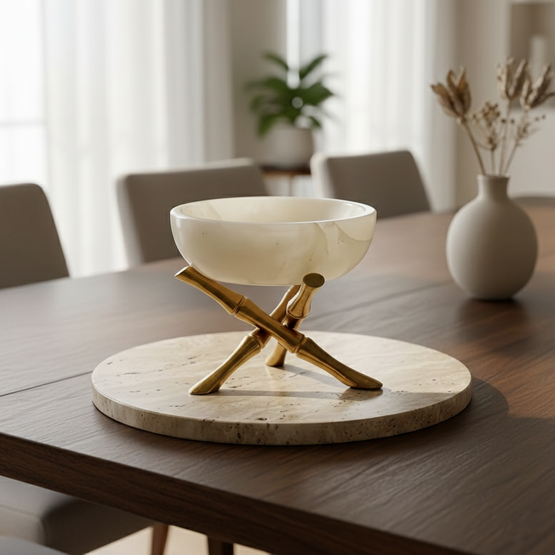 Calacatta Viola Mermer Servis Kasesi: 30 cm (12 inç) Ayaklı Meyve Kasesi